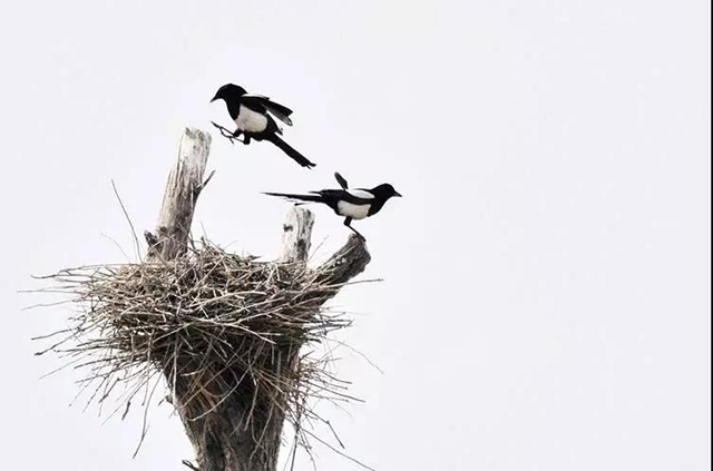 喜鵲迫不及待地重登枝頭